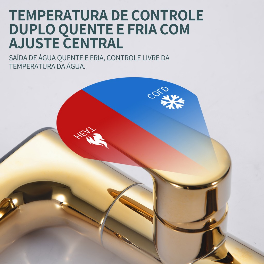 Torneira Misturadora Para Lavatório Iluminado Por LED Display Temperatura Banheiro Rotação de 360° Inox 304 Cor ouro