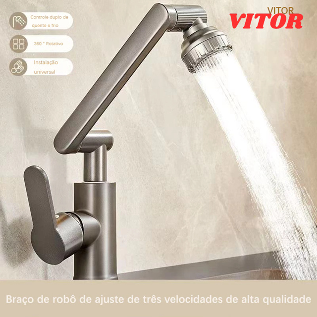 Torneira Multiuso para Cozinha e Banheiro - Braço Robótico 1080° Upgrade, Antirespingos e Instalação Rápida - VITOR
