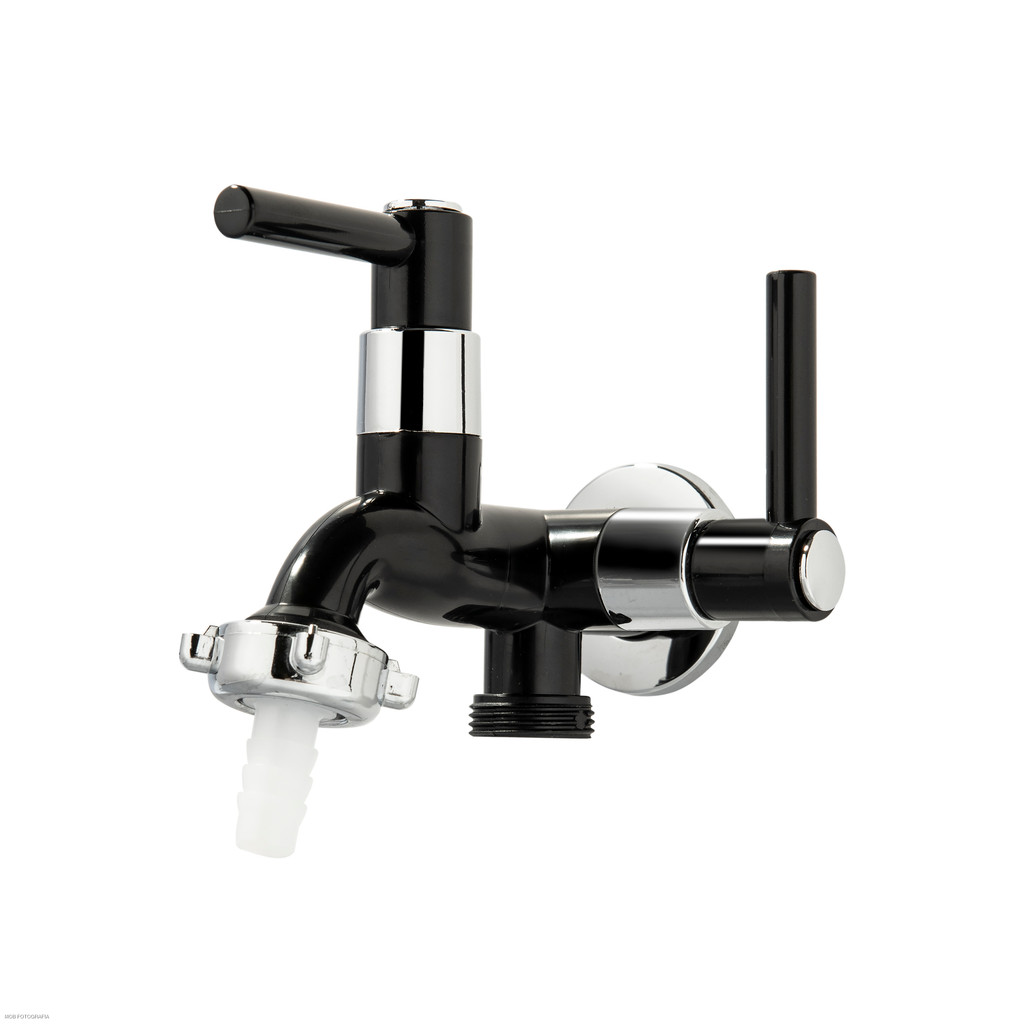 Torneira p/ Tanque e Máquina de Lavar Duas Saídas Preto 1/4 volta Alavanca