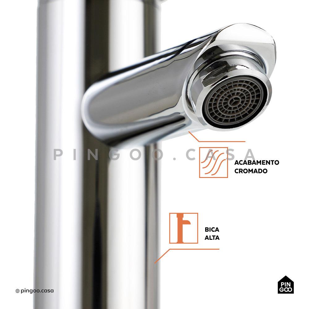 Torneira para banheiro cascata Misturador Monocomando Alta Xingu Pingoo - Cromado