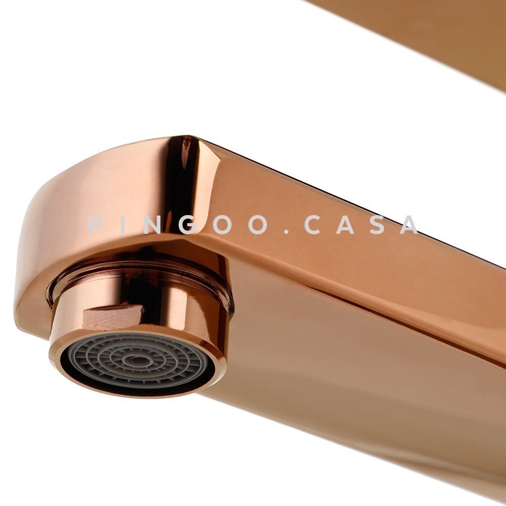 Torneira para banheiro cascata Misturador Monocomando Baixa Madeira Pingoo - Dourado Rose