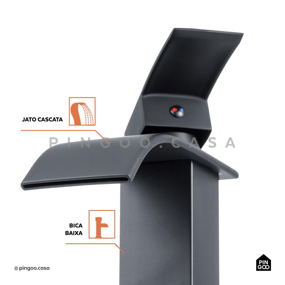 Torneira para banheiro cascata Misturador Monocomando Baixa Paraná Pingoo - Preto