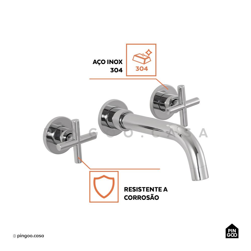 Torneira Para Banheiro Duplo Comando de Parede Cariús Pingoo - Prata