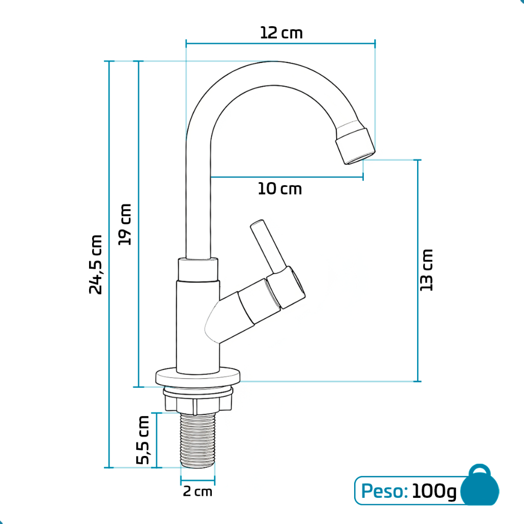 Torneira para Banheiro Lavabo Bica Baixa Bancada ABS Cromada Beltempo A Torneira Classic da Beltempo combina praticidade, durabilidade e custo-benefício. Ideal para lavabos e banheiros, ela se destaca pelo design clássico e pelas vantagens práticas que tornam seu uso mais confortável e econômico. PRINCIPAIS CARACTERÍSTICAS: - Feito em material resistente. - Conta com arejador para um fluxo de água mais suave e econômico. - Sistema de abertura 1/4 de volta, que facilita o uso e evita desperdícios. - Possui giro 360°. - Fácil de instalar, ideal para quem procura praticidade. - Design clássico e minimalista que se adapta a qualquer estilo de ambiente. INFORMAÇÕES TÉCNICAS: - Marca: Beltempo - Linha: Classic - Modelo: TBB-CL-ABS - Tipo: Mesa Bica baixa - Acionamento: Manual 1/4 de volta - Material: Plástico ABS - Acabamento/cor: Cromado - Bitola da rosca de entrada de água: G ½’’ - Água fria. - Possui arejador: Sim - Acompanha: Canopla, rosca de fixação e anel de vedação. - Uso Indicado: Banheiro, Lavabo, Pia, Bancadas, Área de serviço, etc. DIMENSÕES: - Altura Total: 24,5 cm - Altura da Bica: 13 cm - Avanço da Bica: 10 cm - Largura: 12 cm - Furo de Instalação: 3 cm - Peso: 100g DICA DE LIMPEZA: Nunca utilize palha de aço, produtos abrasivos, químicos ou solventes para a limpeza. DÚVIDAS FREQUENTES: 1. Qual o material da torneira? A torneira é feita em ABS resistente. 2. Essa torneira serve para lavatórios padrão? Sim, ela foi projetada para ser compatível com pias padrão, encaixando-se perfeitamente em lavatórios comuns. 3. A torneira possui misturador para água quente e fria? A torneira não possui sistema de misturador quente e frio. 4. A bica da torneira é móvel? Sim, a bica é móvel em 360°, garantindo praticidade no dia a dia. 5. O bico arejador da torneira é móvel? O bico arejador da torneira é fixo, mas pode ser removido para limpeza. 6. A torneira economiza água? Sim, graças ao arejador embutido, a torneira reduz o consumo de água sem comprometer o fluxo. 7. Funciona bem em sistemas de baixa pressão? Sim, a torneira foi desenvolvida para funcionar perfeitamente mesmo em sistemas de baixa pressão. 8. É fácil de limpar? Sim! A limpeza e a manutenção são muito práticas. O arejador também pode ser removido facilmente para uma higienização regular, garantindo sempre o melhor desempenho da torneira. 9. O acabamento descasca com o tempo? O acabamento é resistente a desgastes e mantém sua aparência impecável, desde que siga as orientações de limpeza adequadas. 10. É compatível com aquecedores de água? Não. Temos uma linha completa de cubas, torneiras, válvulas, sifões e engates flexíveis.