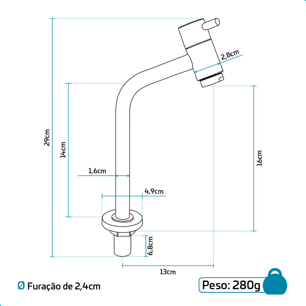 Torneira para Banheiro Lavabo Bica Baixa Bancada Inox Link Cromada 45° Beltempo Conheça a Torneira para Banheiro Bica Baixa Link da Beltempo, uma solução inteligente que une design moderno e funcionalidade para o seu ambiente. Fabricada em aço inox de qualidade que você confia, ela oferece durabilidade e um acabamento cromado elegante. Seu sistema de acionamento 1/4 de volta proporciona praticidade no uso e contribui para a economia de água, enquanto o arejador integrado garante um fluxo suave e sem respingos. Ideal para bancadas, esta torneira é perfeita para banheiros, lavabos e áreas gourmet, otimizando o espaço com um toque de sofisticação. Adquira um produto de excelência da Beltempo, uma marca com 30 anos de inovação, qualidade e confiança no mercado. PRINCIPAIS CARACTERÍSTICAS: - Fabricada em aço inox. - Sistema de abertura 1/4 de volta, que facilita o uso e evita desperdícios. - Conta com arejador para um fluxo de água mais suave e econômico. INFORMAÇÕES TÉCNICAS: - Marca: Beltempo - Linha: Classic - Modelo: BT-9340 - Tipo: Bica Baixa - Instalação: de Bancada/de Mesa - Cor: Prateado/Acabamento: Cromado - Material: Aço Inox - Acionamento: Manual 1/4" De Volta - Cartucho com 30.000 ciclos - Ideal para uso de água fria - Temperatura máxima de operação: 40 °C - Bitola da rosca de entrada de água: G ½’’ - Possui arejador: Sim - Acompanha: Canopla, rosca de fixação e anel de vedação. - Uso Indicado: Banheiro, Lavabo, Pia, Cuba, Lavatório, Área de gourmet, Área de serviço, etc. DIMENSÕES: - Altura Total: 29 cm - Altura da Bica: 16 cm - Avanço Da Bica: 13 cm - Largura: 4,9 cm - Furo de Instalação: 3 cm - Peso: 280g DICA DE LIMPEZA: Utilize um pano macio para limpar a torneira. Se necessário, use detergente ou sabão neutro com um pano umedecido. Enxágue bem e seque com um pano seco. (Nunca utilize palha de aço, produtos abrasivos, químicos ou solventes para a limpeza). DÚVIDAS FREQUENTES: 1. Qual o material da torneira? A torneira é feita de aço inox. 2. Essa torneira serve para lavatórios e pias padrão? Sim, ela foi projetada para ser compatível com pias e lavatórios padrão, encaixando-se perfeitamente em lavatórios comuns. 3. A torneira possui misturador para água quente e fria? A torneira não possui sistema de misturador quente e frio. 4. É compatível com aquecedores de água? Não. 5. O bico da torneira é móvel? O bico é fixo, garantindo um design estável e minimalista. 6. A bica da torneira é móvel? Não, ela possui uma base fixa e estável. 7. A torneira economiza água? Sim, graças ao arejador embutido, a torneira reduz o consumo de água sem comprometer o fluxo, tornando-a uma opção econômica e sustentável. 8. Funciona bem em sistemas de baixa pressão? Sim, a torneira foi desenvolvida para funcionar perfeitamente mesmo em sistemas de baixa pressão, oferecendo um fluxo de água consistente. 9. É fácil de limpar? Sim. E seu arejador pode ser retirado e limpo regularmente. 10. O acabamento descasca com o tempo? O acabamento é resistente a desgastes e mantém sua aparência impecável, desde que siga as orientações de limpeza adequadas. (Nunca utilize palha de aço, produtos abrasivos, químicos ou solventes para a limpeza). Temos uma linha completa de cubas, torneiras, válvulas, sifões e engates flexíveis. Consulte-nos para mais informações!