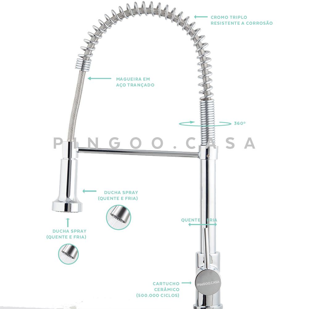 Torneira Para Cozinha Gourmet Misturador Monocomando Envira Pingoo - Prata