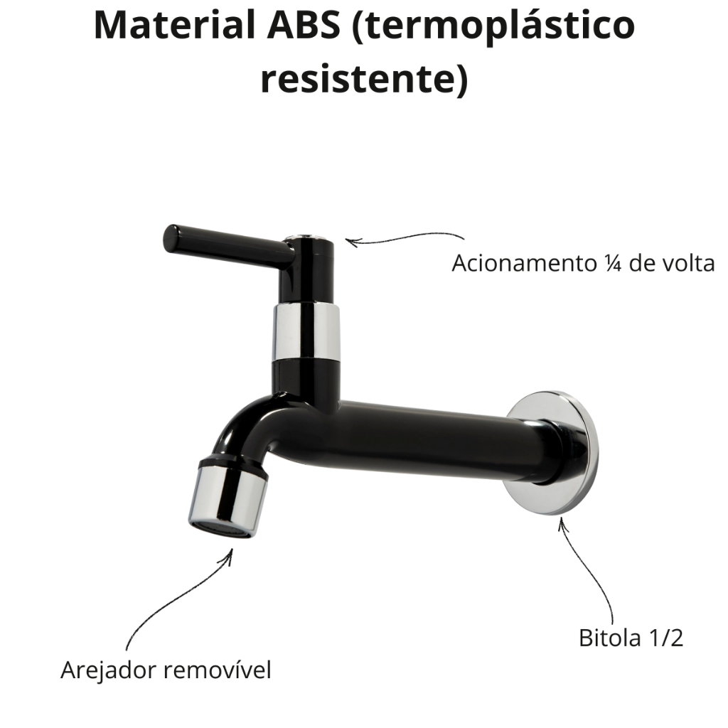 Torneira Para Cozinha Tanque ABS Com Arejador Preta 1/4 de Volta