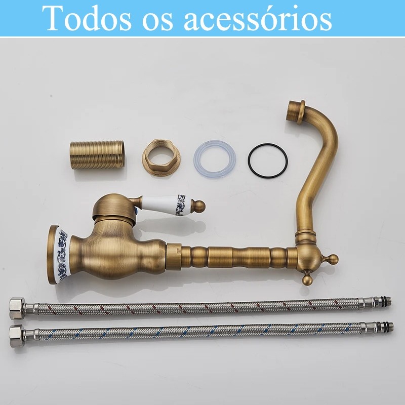 Torneira Para Pia Gourmet De Latão Com Alça Única Antiga Caramic