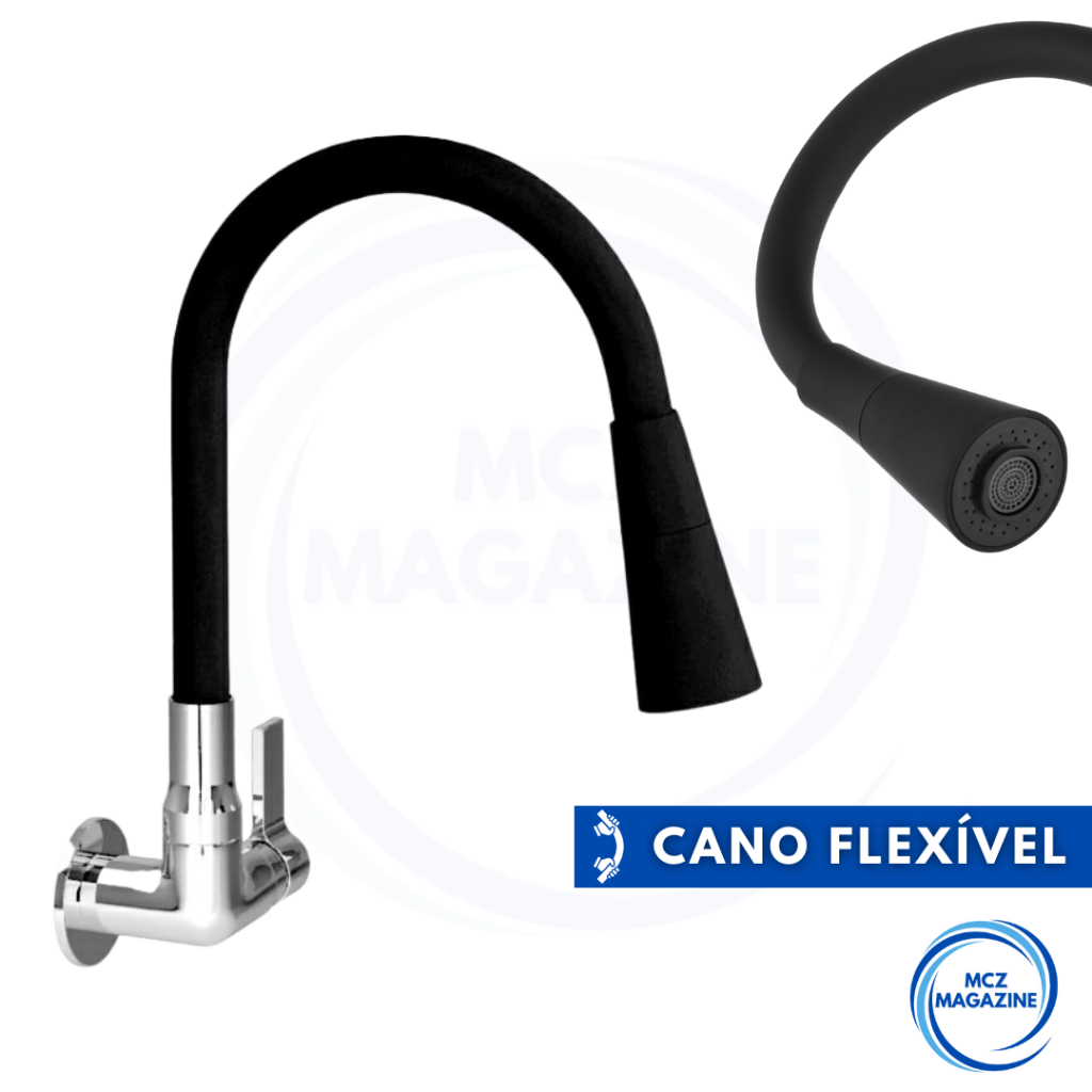 Torneira Parede METAL Cozinha Gourmet Preta Flexivel 2 Jatos 1/4 de Volta