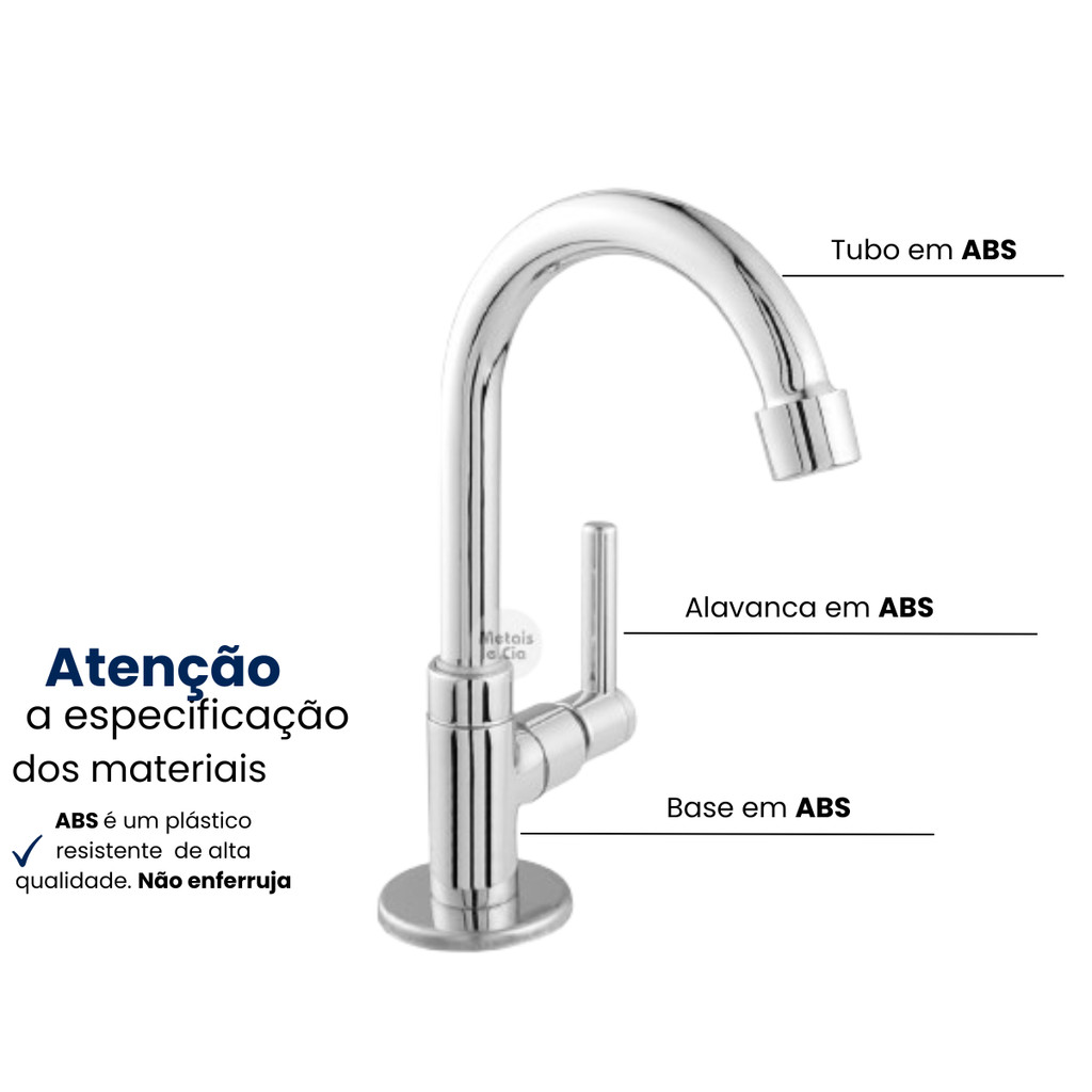 Torneira Bica Móvel Lavatório - ABS - Rosca: 1/2 polegada - Cano bica móvel giro 360° O que é o ABS? Plástico de engenharia amplamente utilizado na indústria, presente em eletrodomésticos, automóveis e diversos outros produtos. Reconhecido por sua resistência a impactos, tração, abrasão e outras características superiores em comparação com plásticos comuns e metais. Produto de fácil instalação e alta qualidade. Oferecemos uma garantia de 30 dias contra eventuais defeitos de fabricação.