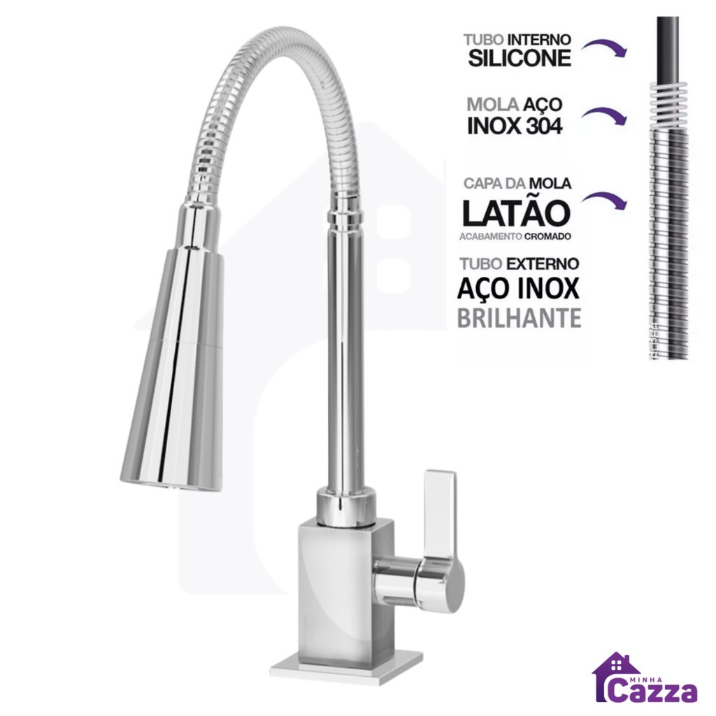 Torneira Pia de Cozinha Gourmet Bancada Mesa Flexível 2 Jatos Duplo Chuverinho Inox Cromado