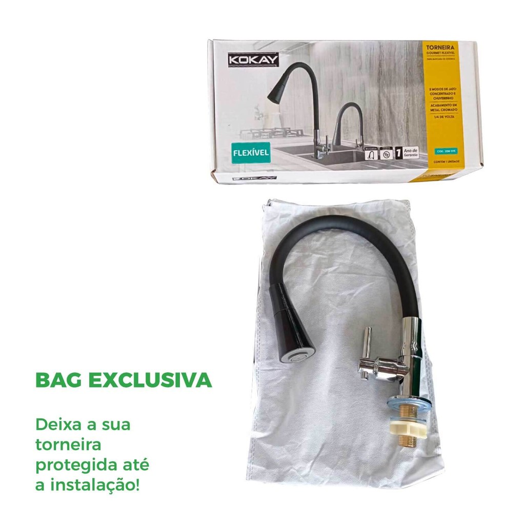 Se você está procurando uma torneira de pia de cozinha que combine beleza, praticidade e qualidade, ENCONTROU! A torneira gourmet flexível para bancada de cozinha da KOKAY reúne praticidade com um design moderno e elegante. Feita em metal e com acabamento cromado, possui duas opções de jato e corpo flexível para maior mobilidade na utilização. É ideal para quem gosta de cozinhar com estilo e conforto, pois possui um design moderno e elegante, além de um bico flexível que permite direcionar o jato de água para onde você quiser. A Torneira também é fácil de instalar e limpar, e por ter um acabamento cromado evita manchas e corrosão. Ela ainda conta com um arejador que economiza água e evita respingos. Especificações Técnicas: TORNEIRA DE PIA COZINHA BANCADA GOURMET FLEXÍVEL