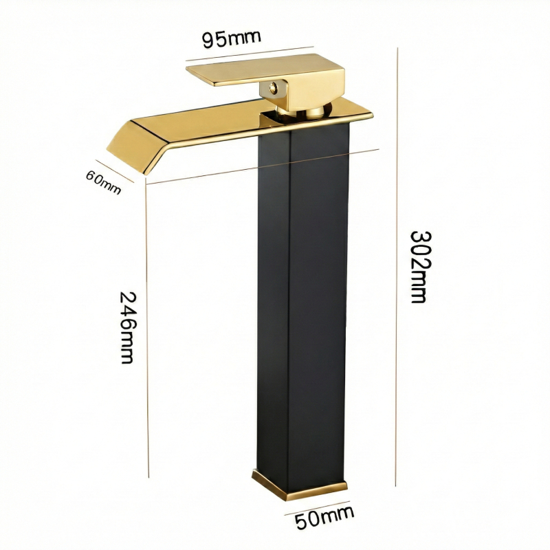 Torneira Preta Dourada Banheiro Misturador Monocomando Bica Alta Lavabo Luxo 30cm Yesop