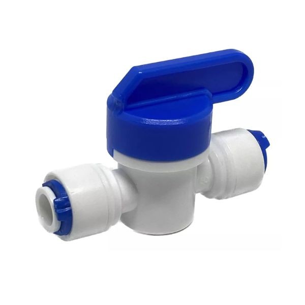 Registro em linha para mangueira de 1/4'' (6mm) recomendado para purificadores de água que possuem entrada de mangueira 1/4, solução para locais onde o ponto de água não possui registro fixo para o bebedouro ou purificador. Muito fácil instalação, facilita a limpeza de seu purificador no momento que precisar fechar a água de entrada, pode ser usado também como redutor de vasão devido ao seu modo de regulagem. Com o engate rápido, basta plugar a mangueira. Os conectores para conexão rápida oferecem as seguintes vantagens: - Conexão e desconexão rápida, sem necessidade de uso de ferramentas. - Também apropriados para conectar tubos de metal. - Suportam uma pressão de trabalho de até 10 Kgf/cm2 a 20ºC e de 4 Kgf/cm2 a 60ºC. - Proporcionam uma conexão segura e sem vazamentos. - São fornecidos na cor branca.