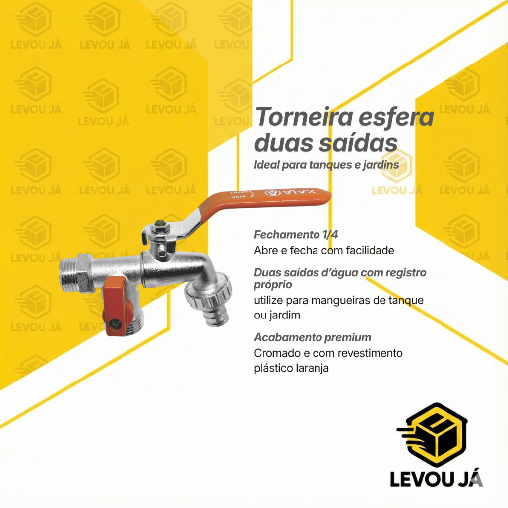 Torneira esfera com duas saídas de água, ideal para uso simultâneo em tanque, tanquinho, máquina de lavar, jardins, área externa. Medidas das conexões: 1/2" x 3/4" x 3/4" Corpo fabricado em zinco, garantindo resistência e durabilidade Válvula esfera em ferro, proporcionando vedação eficiente e acionamento preciso Acompanha bucha plástica redutora de 3/4" para 1/2", facilitando a instalação Possui saída secundária dedicada para máquina de lavar Conta com bico adaptador para mangueira, oferecendo maior versatilidade de uso Nos envie sua dúvida, temos uma equipe especializada pronta para te atender.
