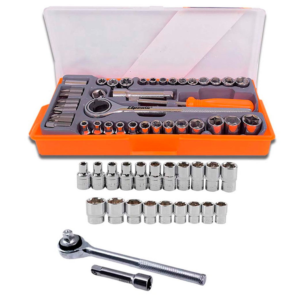 COMERCIAL VIPASA DISTRIBUIDORA. Torno De Bancada Aço Base Fixa Mini Morsa 3Pol. 75mm + Kit Soquete 40 Peças Com Chave Catraca - Composto por: 1 TORNO/ MORSA DE BANCADA, 3 POL., 75 MM, 1 PC//SPARTA 1 JG SOQUETE SEXT 40PCS - C/ CHAVE CATRACA TORNO/MORSAS DE BANCADA, 3 75 MM//SPARTA - DESCRIÇÃO: Prender, Fixar Peças para execução de trabalhos manuais ou ourives como: cortar, lixar, fresar, furar e etc. Base fixa facilitando fixar as peças na mesa ou bancada, qualidade Profissional - ACABAMENTO: * Acabamento resistente, proporcionando resistência contra oxidação e corrosão. - DETALHES TÉCNICOS: › Diâmetro da base: 75mm › Abertura máxima: 30mm › Peso: 630g › Material: Ferro Nodular Fundido - MARCA: Sparta - MODELO: 1851155 Jogo Chave Soquete C/ Catraca Reversível 40 Pçs Sparta * Itens inclusos: - 1 Disco para catraca - 2 Bits pozidrive 25mm: PZ1, PZ2 - 2 Bits de fenda 25mm: 5,6mm - 3 Bits phillips 25mm: PH1, PH2 e PH3 - 10 Soquetes Sextavado: 4 - 4,5 - 5 - 5,5 - 6 - 7 - 8 - 9 - 10 - 11mm - 10 Soquetes Sextavado: 3/16 - 7/32 - 1/4' - 9/32 - 5/16 - 11/32 - 3/8 - 13/32 - 7/16 - 1/2' - 3 Soquetes de encaixe de 3/8': 12 - 13 - 14mm - 3 Soquetes estriados: 1/4' - 5/16 - 3/8 - 1 Chave catraca Reversível encaixe 3/8 - 1 Extensão para soquetes de 3 encaixa 3/8 - 1 adaptador 3/8 para 1/4' - 1 Cabo fenda para soquetes encaixe 1/4' - 1 adaptador macho encaixe 1/4 sextavado - 1 adaptador fêmea encaixe 1/4' sextavado - MARCA: Sparta - MODELO: 13565 - GARANTIA: 3 meses pelo fabricante COMERCIAL VIPASA DISTRIBUIDORA.