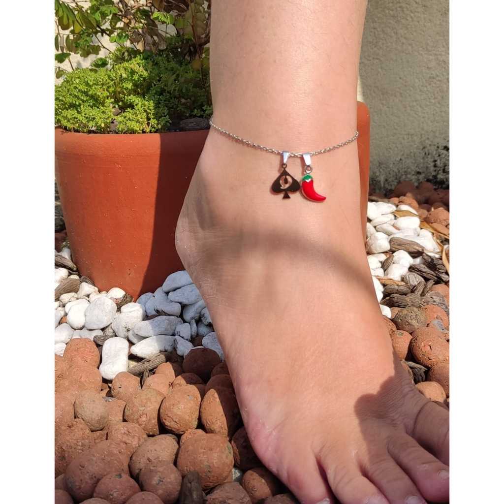 Tornozeleira Aço Inox Pimenta Dama de Espada HotWife CucKold Queen Of Spades Exclusivo Okê Aro Místico -