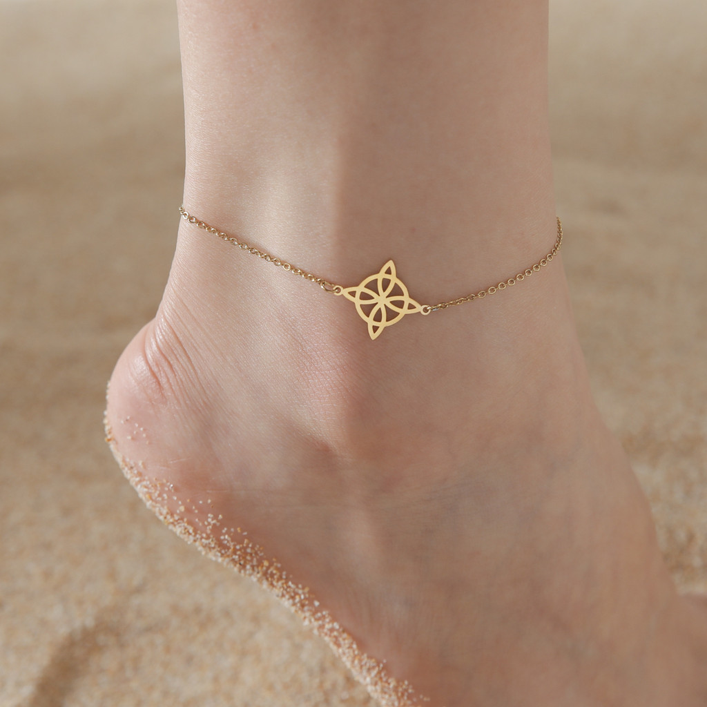 Tornozeleira com Nó de Bruxa para Mulheres, Tornozeleira de Corrente de Contas de Camada Dupla em Aço Inoxidável, Acessó