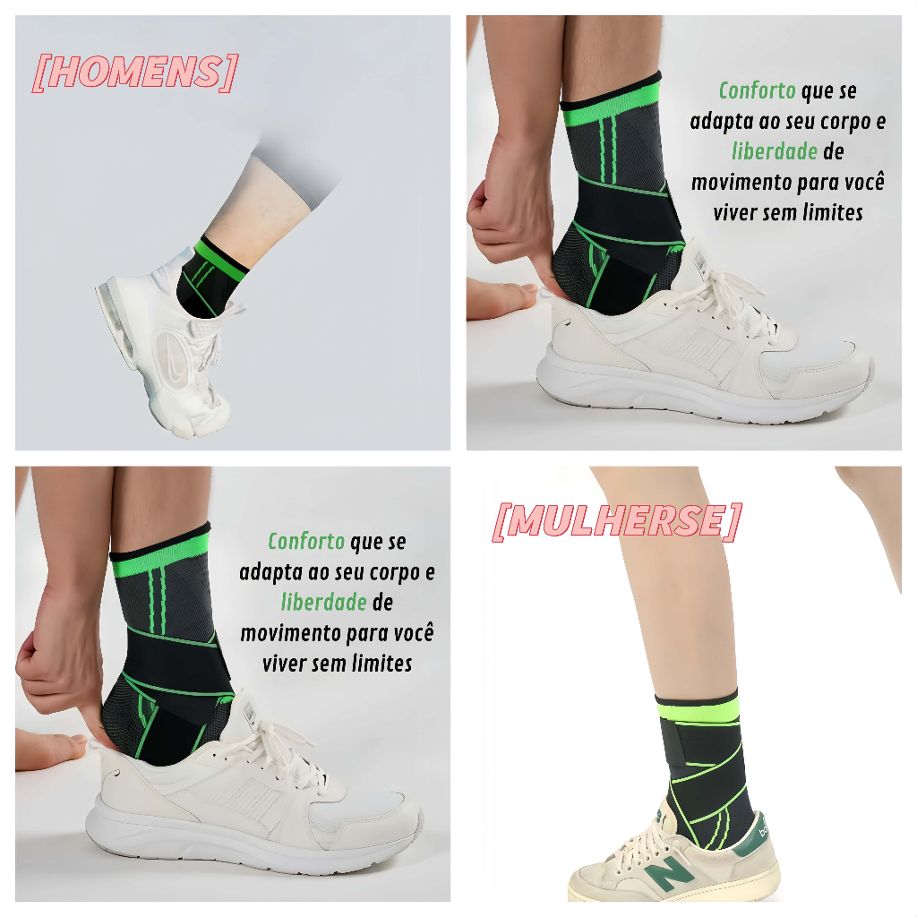 *** A cor é a do anúncio (as que está nas fotos)*** Transforme seus tornozelos em verdadeiros aliados da performance! Com nossa tornozeleira de compressão, você garante mais estabilidade e suporte para os seus movimentos, evitando lesões e permitindo que você dê o seu melhor em cada treino. Aproveite agora e experimente a diferença que essa tornozeleira pode fazer em seu bem estar! >>> 9 Benefícios da Tornozeleira de Compressão: 1 - Redução do inchaço: A compressão ajuda a reduzir o inchaço causado por lesões ou condições médicas. 2 - Prevenção de lesões: A tornozeleira de compressão pode ajudar a prevenir lesões ao fornecer suporte e estabilidade ao tornozelo. 3 - Melhora da circulação sanguínea: A compressão ajuda a melhorar a circulação sanguínea, o que pode ser benéfico para pessoas com problemas de circulação. 4 - Alívio da dor: A compressão pode ajudar a aliviar a dor associada a lesões ou condições médicas. 5 - Aceleração da recuperação: A tornozeleira de compressão pode ajudar a acelerar a recuperação de lesões ao reduzir o inchaço e promover a circulação sanguínea. 6 - Suporte durante a atividade física: A tornozeleira de compressão pode fornecer suporte e estabilidade ao tornozelo durante a atividade física, o que pode ajudar a prevenir lesões. 7 - Melhora da mobilidade: A compressão pode ajudar a melhorar a mobilidade do tornozelo, o que pode ser benéfico para pessoas com problemas de mobilidade. 8 - Facilidade de uso: A tornozeleira de compressão é fácil de colocar e remover, tornando-a conveniente para uso diário. 9 - Baixo custo: A tornozeleira de compressão é relativamente barata em comparação com outros dispositivos médicos e pode ser uma opção acessível para pessoas com orçamentos limitados. >>> SUGESTÕES DE USO: - Use durante atividades físicas para ajudar a prevenir lesões; - Use após lesões ou cirurgias para ajudar a acelerar a recuperação; - Use durante o dia para ajudar a reduzir o inchaço e a dor associados a lesões ou condições médicas. *** Diga adeus às dores de tornozelo! *** A solução ideal para você! >>> INFORMAÇÕES TÉCNICAS: - Tamanho Único: 24 x 11cm - Faixa com 2 pontas: 26cm - Material: Nylon, Elastano e Borracha - Confortável; - Formato Anatômico, Tecnologia 3D - Malha Elástica, Justa e Respirável