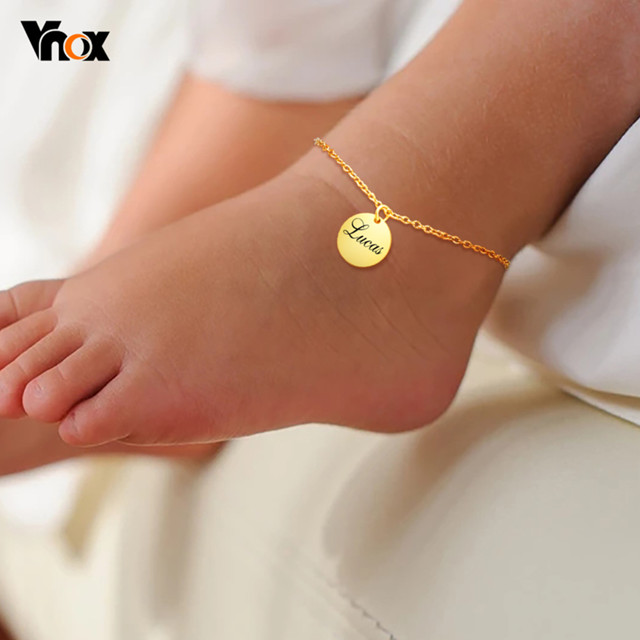 Tornozeleira De Identificação Infantil Personalizada Vnox , Corrente De Pé Hipoalergênica Segura Em Ouro 18K , Joias De Aniversário Com Nome