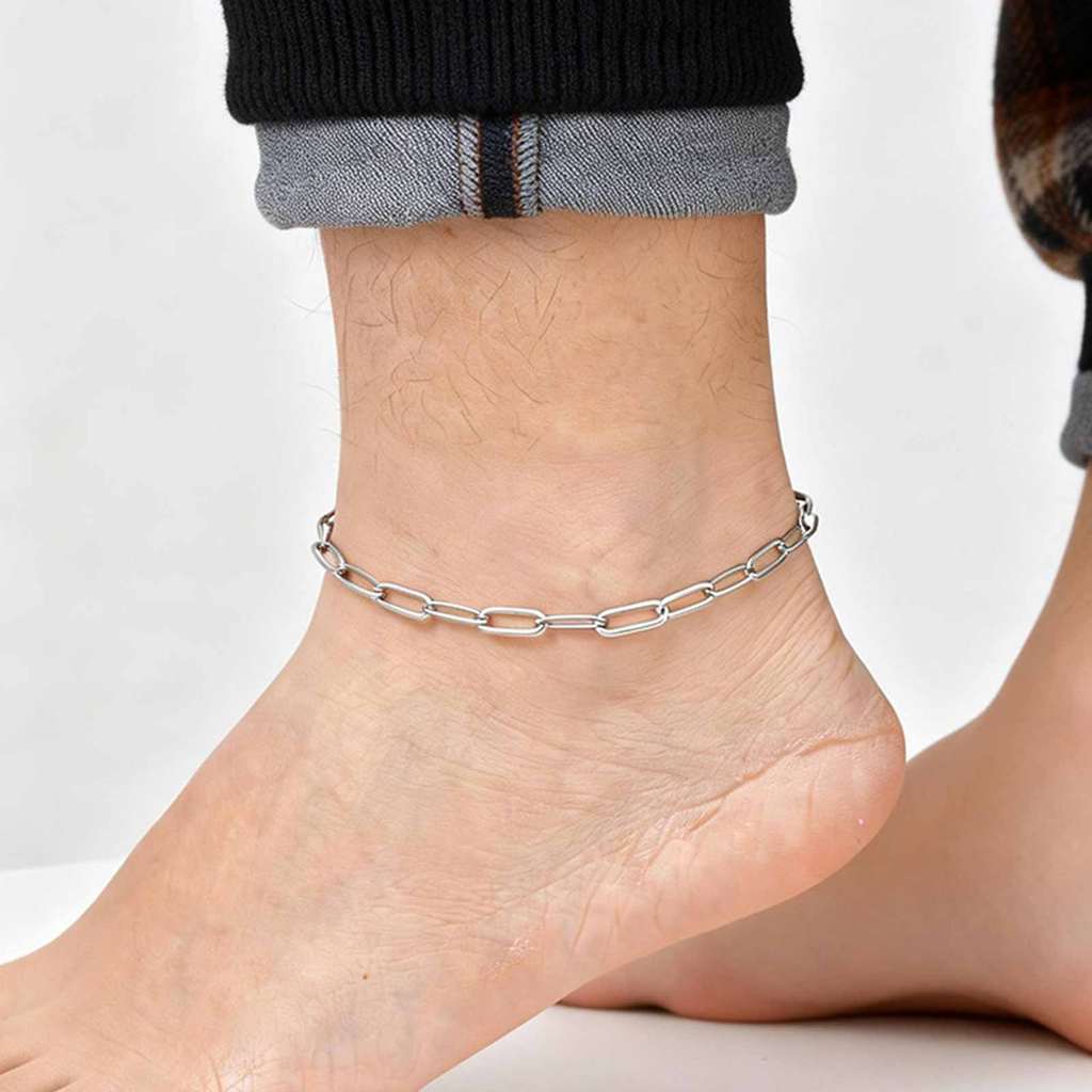Tornozeleira Masculina De Aço Inoxidável Minimalista Vnox Com Elo De Corrente , Joias Impermeáveis Para Pés Uso Diário