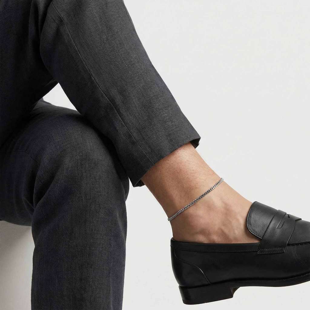 Tornozeleira Masculina Minimalista Vnox Em Aço Inoxidável Prateado À Prova D'água Com Elo Cubano Para Uso Diário