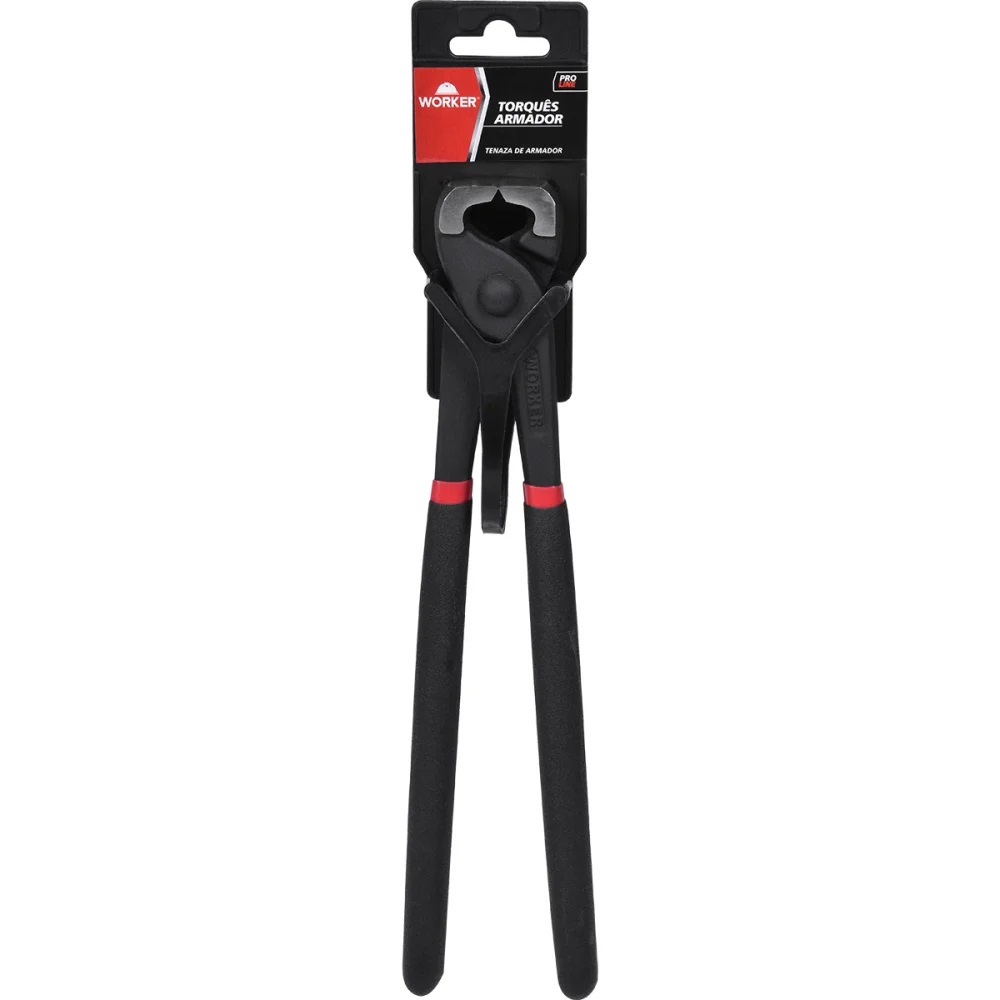 Torquês Armador em Aço Carbono 10" Worker - Referência: 143332 - Indicado para uso na construção civil e para montagem de armações de estruturas para concentragem - Aço carbono especial forjado e temperado - Acabamento fosfatizado - Cabeça polida - Cabo revestido de plastisol - Aréa de corte com têmpera por indução e resistência de 56-62 HRC. Garantia de 3 meses concedida pela fabricante