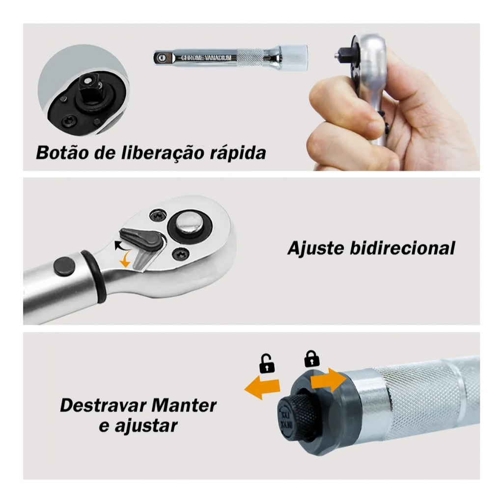 🛠️Torquimetro De Estalo 1/2 Pol 2.8 A 21kg Crv Reversível 🛠️ O torquímetro de estalo é uma ferramenta utilizada para aplicar torque ou força em parafusos, porcas e outros elementos de fixação. 🔩 O Torquímetro de estalo encaixe 1/2" capacidade 28 - 210 Nm da Gorillaz permite que você limite com precisão a quantidade de torque que você aplica para apertar o fixador. 📏 Está equipada com uma função de reversão e liberação rápida para fácil substituição do soquete. ⚙️ Fabricado em aço cromo vanádio. 🪛 VANTAGENS: ✨ - Fácil utilização. 🤝 - Faixa de torque. 📊 - Durabilidade. 💪 - Segurança. 🛡️ - Precisão. 🎯 Kit 11 peças Torquímetro 1/4" ✔Pontas hexagonais: 3–4–5–6–8–10mm ✔Pontas Torx: T20, T25, T30 ✔Faixa de aplicação: 5–25 Nm ✔Dimensões: 31,586cm ✔Peso: 1kg ✔Conteúdo da embalagem: 1 torquímetro de 1/4", 9 pontas de encaixe rápido de 1/4", 1 extensão H5 de 1/4" FICHA TÉCNICA: 📋 - Tipo de encaixe: quadrado de 1/2 polegada. 📏 - Faixa de medição: 28 - 210Nm. 🔢 - Material: aço cromo vanádio. 🛠️
