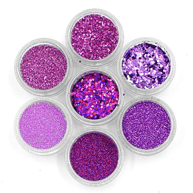 TORRE CASCATA DE GLITTER LILÁS 30 DECORAÇÃO DE UNHAS 7 CORES