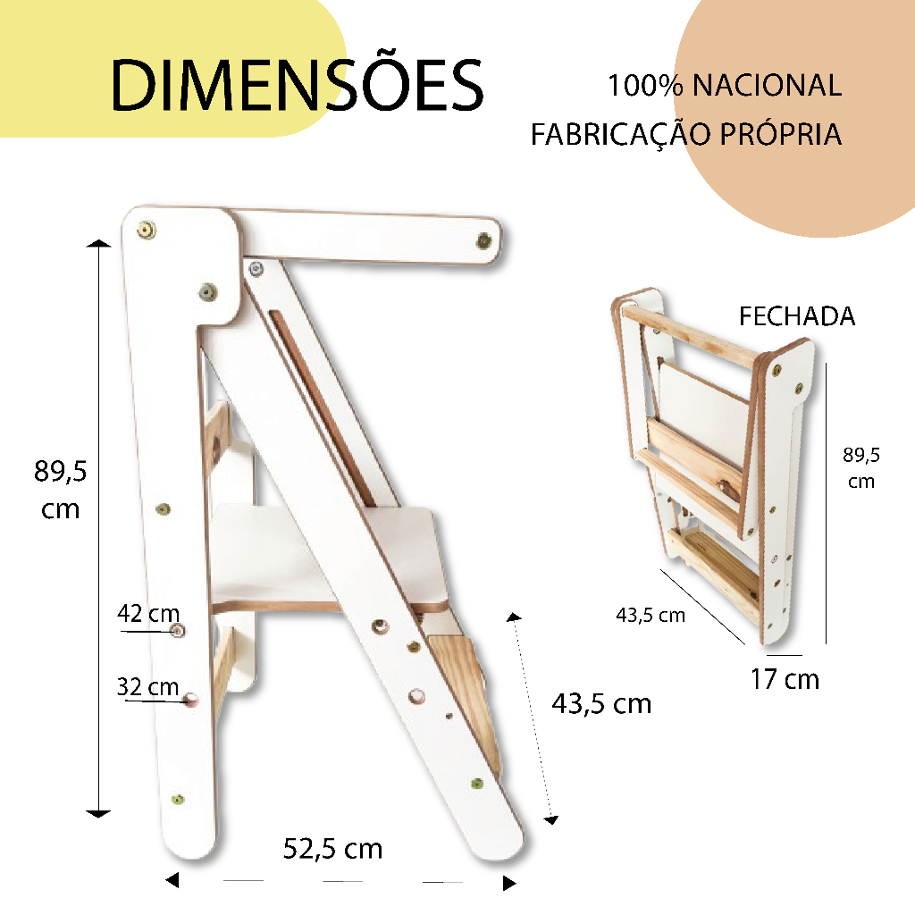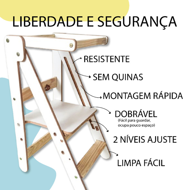 A Torre Montessoriana Aprendizagem Infantil Cadeira Madeira da marca Arteiros Moveis Infantis é a escolha ideal para estimular a autonomia e o aprendizado das crianças. Com um design ajustável e dobrável, esta torre oferece duas alturas diferentes, permitindo que seu pequeno explore o mundo ao seu redor de forma segura e divertida. Fabricada em madeira e MDF, a torre é robusta e suporta até 40 kg, garantindo a segurança necessária para crianças de 0 a 24 meses. Suas dimensões de 52,5 cm de profundidade, 43,5 cm de largura e 89,5 cm de altura a tornam perfeita para qualquer ambiente, seja na cozinha, sala ou área de brincadeiras. A montagem é simples e rápida, permitindo que você prepare o espaço para seu filho em pouco tempo. Com a Torre Montessoriana, você proporciona uma experiência de aprendizado enriquecedora, onde a criança pode participar ativamente das atividades do dia a dia, desenvolvendo habilidades motoras e confiança.