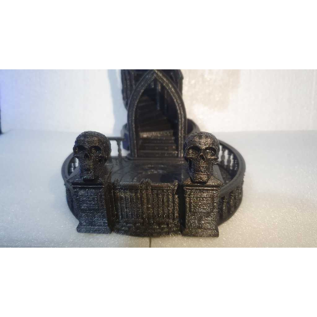 🎲 Torre de Dados Gótica em Espiral feita em impressão 3D com acabamento preto metálico. Ideal para RPGs como D&D, Tormenta e Pathfinder. Garante rolagens justas e cheias de estilo, além de ser uma linda peça decorativa para sua mesa geek. Produzida em pet de alta qualidade e feita sob encomenda — disponível em outras cores! Deixe suas rolagens de dados muito mais emocionantes com esta torre de dados temática gótica! Perfeita para RPGs como Dungeons & Dragons, Pathfinder, Tormenta e outros jogos de mesa. 🌀 Destaques do produto: ✅Impressa em 3D com filamento; ✅Design com escadaria em espiral e detalhes sombrios; ✅Rolagem justa e aleatória dos dados; ✅Ideal para dados D4, D6, D8, D10, D12 e D20; ✅Acabamento em preto brilhoso para um visual incrível; ✅Peça durável, ideal também como decoração geek. 💀 Um item indispensável para quem ama RPG! Torne suas sessões de jogo mais imersivas e cheias de estilo com essa torre de dados. 📦 Produto feito sob encomenda – você pode solicitar outras cores! 📏 Dimensões aproximadas: →Comprimento: 21,5cm →Largura: 15 cm →Altura: 20,5cm Atenção → Como toda impressão 3D podem haver linhas e marcas do processo do impressão.