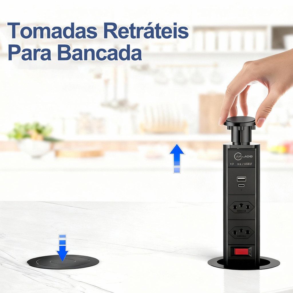 Torre de Tomada Retrátil Embutir Multiplug USB TIPO-C 2 3 4 Tomadas 250V Mesa Bancada