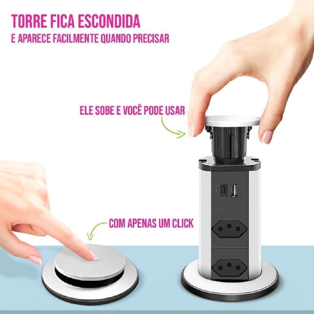 🔌✨ Torre de Tomadas Multiplug Retrátil de Embutir: 3 Tomadas + USB + USB-C 🖥️💡 Organize e energize seu espaço com inteligência e estilo! 🚀 A Torre de Tomadas Multiplug Retrátil é a solução perfeita para qualquer ambiente, seja em mesas, bancadas, escritórios, cozinhas ou móveis. Seu design moderno e discreto permite que ela fique embutida, aparecendo apenas quando você precisar! Basta um clique e puxar para ter energia ao alcance das suas mãos. ✨ 🌟 Por Que a Torre Multiplug É Essencial Para Você? 📏 Design Retrátil e Discreto: Esconda as conexões quando não estiver usando! Sistema Push to Open – empurre para abrir e fechar, mantendo seu ambiente limpo e minimalista. 🤫 ⚡ Conectividade Completa: Equipada com 3 tomadas de 3 pinos (padrão brasileiro), 1 entrada USB e 1 entrada USB-C! Carregue todos os seus dispositivos, de smartphones a notebooks, com facilidade. 📱💻🔋 💧 Proteção Contra Respingos: Pensada para sua segurança e conveniência! Pode ser instalada em locais como a pia da cozinha, garantindo tranquilidade. ✅ 🛡️ Segurança Reforçada: Possui proteção anti-choque para crianças e proteção contra quedas e oscilações de energia, mantendo seus eletrônicos seguros. 👨👩👧👦 💎 Design Premium: Construída com material de excelente qualidade, oferece durabilidade e um visual elegante que combina com qualquer decoração. 🔌 Espaçamento Otimizado: Bom espaçamento entre as tomadas para você conectar seus aparelhos sem dificuldade. ⚙️ Características e Especificações: Tipo: Torre de tomada retrátil de embutir Conexões: 3 Tomadas 3 Pinos (Padrão Brasileiro) + 1 USB + 1 USB-C Sistema: Push to Open (empurrar para abrir) Segurança: Proteção anti-choque para crianças; Proteção contra quedas e oscilações de energia. Uso Ideal: Mesas, bancadas, móveis, escritórios, cozinhas. ⚡ ESCOLHA A SUA AMPERAGEM AO LADO! Temos a Torre Multiplug Disponível em 10 Amperes e 20 Amperes para atender perfeitamente às suas necessidades de energia! 💪 Simplifique sua vida e organize seu espaço com a Torre de Tomadas Multiplug! Clique em "Comprar Agora" e garanta praticidade e segurança para o seu dia a dia. 🛒💖