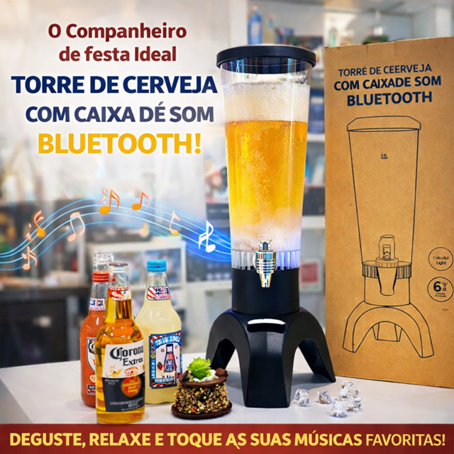 Torre Dispensadora De Cerveja 1.5L - Torneira Integrada Fácil De Limpar Com Luz LED e Caixa Bluetooth