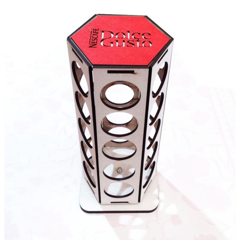 Torre Porta Cápsulas Sextavada GIRATÓRIA 360°+ FRASE | TRÊS CORAÇÕES / DOLCE GUSTO / NESPRESSO| Pintado inauguração