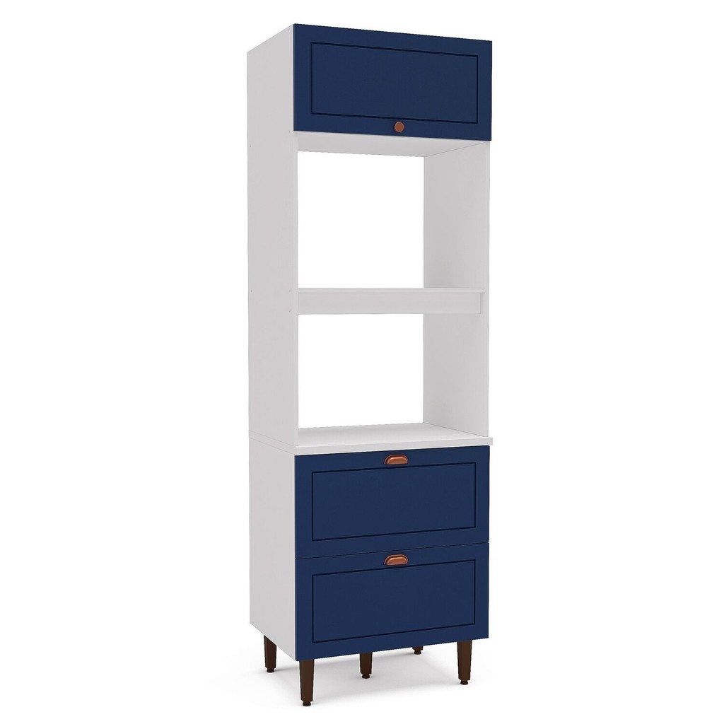 Torre Quente 1 Porta 2 Gavetas 2 Nichos para Forno Pérola Yescasa Branco/Azul