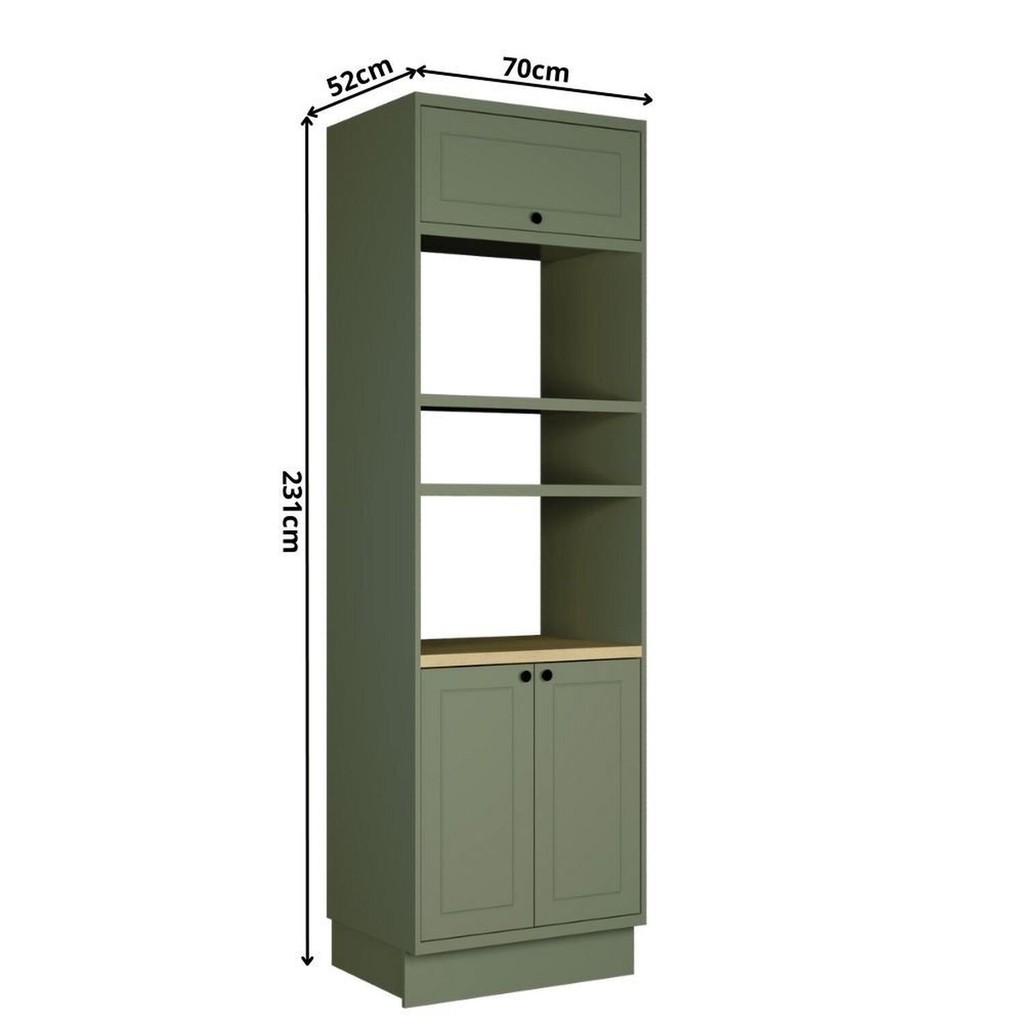 A torre quente Sevilha de 2 portas e 1 basculante possui espaço ideal para forno elétrico e micro ondas. Além disso, este móvel agrega beleza ao ambiente e proporciona praticidade e sofisticação. O produto é produzido 100% em MDF, os puxadores são metálicos em ponto e as dobradiças possuem amortecimento, de modo que agrega resistência e funcionalidade ao produto. Estilo: Moderno Peso (kg): 63.6 Garantia: 06 Meses Altura (cm): 231 Acabamento: Pintura Largura (cm): 70 Possui Pés: Rodapé Cor dos Pés: Branco Tipo de Porta: Misto (Bater e Basculante) Altura dos Pés: 12 Pés Reguláveis: Não Possui Gavetas: Não Possui Rodízio: Não Suporta Até (kg): 40 Possui Espelhos: Não Profundidade (cm): 52 Escala de Brilho: Semi-Brilho Material dos Pés: MDF Serviço Montagem: 114259443 Material da Porta: MDF Origem do Produto: Nacional Tipo de Paneleiro: Paneleiro Forno Acabamento dos Pés: Pintura Ambiente Principal: Cozinha Material Principal: MDF Acabamento da Porta: Pintura Sapatas Niveladoras: Sim Material da Prateleira: MDF Acabamento da Prateleira: Pintura Tipo de Puxador da Porta: Externo Escala de Brilho da Porta: Semi-Brilho Peso Máximo por Prateleira: 5 Tipo de Armário de Cozinha: Paneleiro Acompanha Rodapé Decorativo: Sim Material do Puxador da Porta: Metal Escala de Brilho da Prateleira: Semi-Brilho Tipo de Dobradiça/Corrediça da Porta: 35 mm Material da Dobradiça/Corrediça da Porta: Metálica Marca: Herval Cor Interna: Verde Hill Cor: Verde/Carvalho Cor do Produto: Verde Hill /Carvalho Nature Itens Inclusos: 1 Torre Quente, Kit ferragens e Manual de Montagem Cor Predominante: Verde Linha ou Coleção: Sevilha