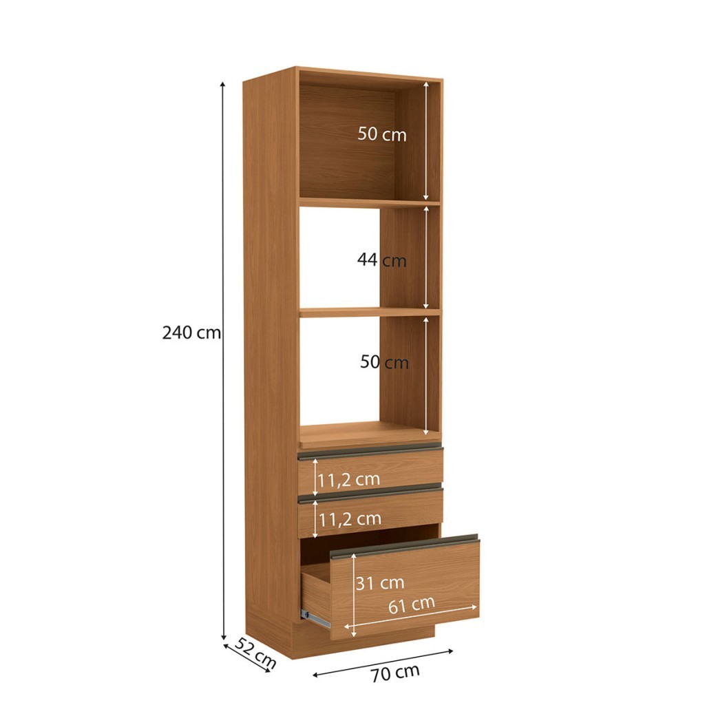 Descrição: O(a) Torre Quente Mônica 1 Porta 3 Gavetas Canela - Kappesberg é produzido em MDP na escala de brilho Fosco, e possui um grau de dificuldade de montagem: Médio.Seu revestimento/acabamento é: Pintura UV. Infelizmente a Loja não oferece serviço de montagem, deixamos essa informação bem clara em todas as nossas páginas de produto. Onde especificamos que os móveis chegarão desmontados, e que a montagem fica por conta do cliente. Como não oferecemos esse serviço não embutimos o mesmo no preço dos produtos, ou seja, maior economia para você! Todos os nossos móveis também acompanham o manual de montagem, e caso você queira, pode realizar a montagem você mesmo, sempre especificamos os graus de montagem dos produtos. Nos casos de grau baixo e médio, com pouco ou nenhum conhecimento, você mesmo pode efetuar a montagem, e fazer essa economia. Apenas nos graus de montagem alto, recomendamos a contratação de um montador com experiência, visto que são montagens mais complicadas. A montagem é feita com Parafusos Philips.. Este móvel é indicado para que seja utilizado no(a) Cozinha, dando um toque especial no cômodo de sua casa. Para que você mantenha seu produto sempre em ótimo estado, recomendamos que use apenas um pano seco ou levemente umedecido, sem o uso de quaisquer produtos abrasivos. A Loja garante aos clientes, 90 dias de garantia nos produtos, porém, recomendamos que entre em contato com o fornecedor/marca do produto, pois o mesmo(a), pode garantir um prazo maior de garantia. Lembrando ainda que: quaisquer objetos decorativos que aparecem nas imagens, não acompanham o produto. Características: - Espessura da Estrutura: 15mm - Possui Gavetas?: Sim - Quantidade de Gavetas: 3 - Peso Suportado nas Gavetas (Kg): 7 Kg - Material das Corrediças: Metálica - Tipo da Corrediça: Telescópica - Possui Portas?: Sim - Quantidade de Portas: 1 - Material da Porta: MDP - Espessura da Porta: 15 mm - Tipo de Porta: Portas de Bater - Material das Dobradiças: Metálica - Possui Vidro?: Não - Possui Espelho?: Não - Possui Prateleiras?: Não - Possui Puxadores?: Não - Possui Ripamento?: Não - Linha ou Coleção: Mônica - Montagem Invertida?: Não Pode ser Montado Invertido - É frágil?: Não - Possui Nicho?: Não - Material da Estrutura: MDP - Escala de Brilho: Fosco - Possui Rodízios?: Não - Possui Sapatas?: Sim - Possui Pés?: Não - Pés com regulagem de altura?: Não - Quantidade de Pés/Sapatas: 4 - Possui Borda de PVC nas Bordas?: Não - Possui espelho?: Não - Cozinha Suspensa: Não - Tipo de Móveis de Cozinha: Armário - Acompanha: Torre Quente, Kit Ferragens e Manual de Montagem - Acompanha Manual de Montagem: Sim - Como os Móveis Chegarão na Minha Casa: Desmontados, em caixas, acompanhados de todas as peças, ferragens e manuais para montagem. - Grau de Dificuldade da Montagem: Médio - Necessita de Montagem: Sim - Sistema de Montagem: Parafusos Philips. - Garantia (dias): 90 - Indicação de Uso: Cozinha - Observação: Objetos decorativos que aparecem na imagem, não acompanham o produto. - Recomendação de Manutenção: Use um pano limpo e ligeiramente umedecido em água ou álcool. - Revestimento /Acabamento: Pintura UV - Espaço Para Forno: Sim - Espaço Para Micro-Ondas: Sim - Medidas Espaço Forno (A x L x P):: 50 x 67 x 52 cm - Medidas Espaço Microondas (A x L x P):: 44 x 67 x 52 cm