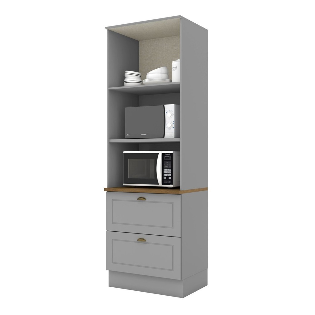 Torre Quente para Forno 2 Gavetas 2 Portas com Tampo Americana Cinza/Nature