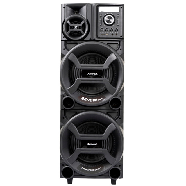 Torre Som 2200W Amvox ACA 2201 Pesadão Duplo Woofer 12 Led TWS Bivolt bluetooth sem FM
