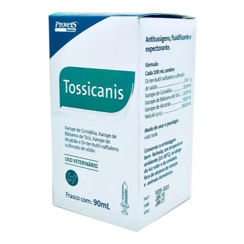 Você sabia que o seu cãozinho também pode sofrer com crises de tosse? Pois é! Além de indicar que algo não está indo bem com a saúde dele, ela causa um imenso desconforto em seu pet e para aliviá-lo, nada melhor que um produto de qualidade como o Tossicanis, da Provets. MAIS: - Facilita a saída de secreções; - Reduze a frequência da tosse; - Torna fluido as secreções. MODO DE USAR: - Administrar por via oral, 3 em 3 horas. - Raças de pequeno porte e crias: 5ml. - Raças de médio porte: 10ml. - Raças de grande porte, adultos: 15ml.