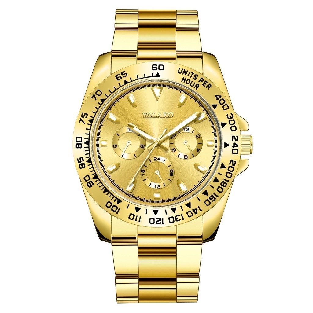 Totalmente automático estilo ouro relógio de aço dos homens relógio de quartzo