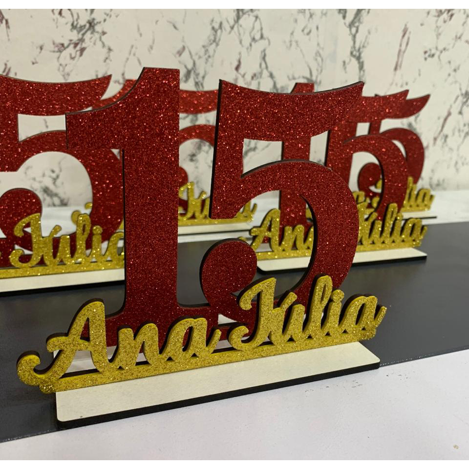 🎉 Totem 15 Anos Personalizado com Nome ✨ MDF Glitter - 12x14cm 🎀 Festa Debutante 🎂