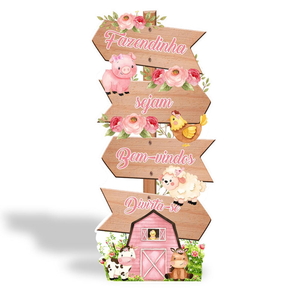 Totem Placa Display MDF Adesivado Pézinho Fazendinha Animais Setas Placa 65cm