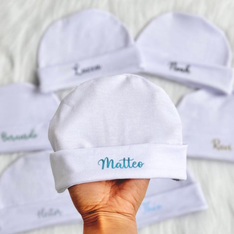 Touca bebê com o nome personalizado | Touquinha Saída Maternidade | Touca para Bebê Menina e Menino.