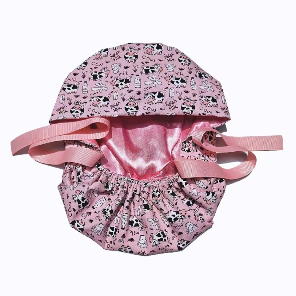 Touca Cirúrgica Forrada De Cetim Com Rabo De Cavalo , Cabelo Longo De Algodão , Toalha Absorvente De Suor , Médica Elást