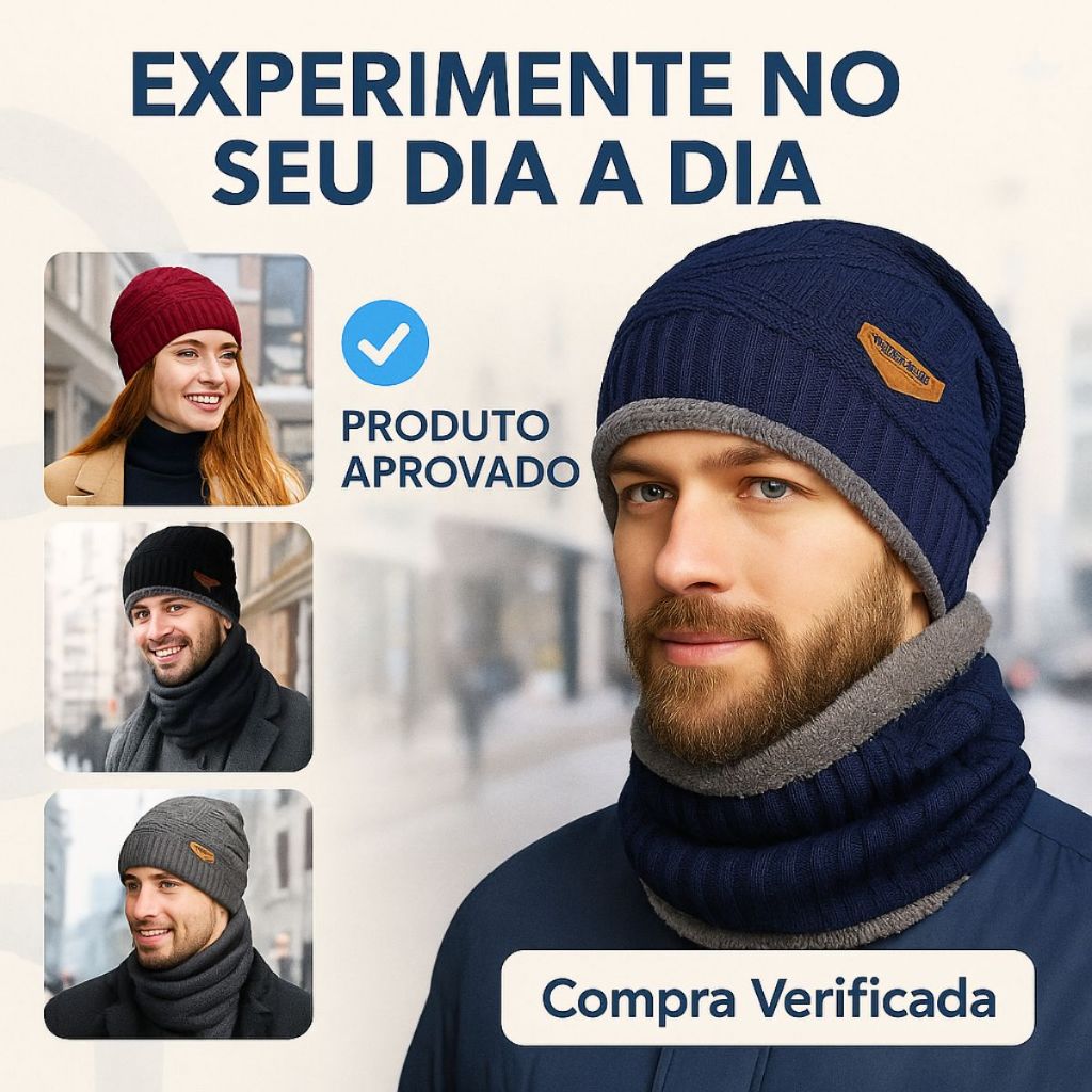 | Touca Conjunto Gorro Forrado Com Gola Cachecol Frio Inverno Unissex... este produto | R$ 24,90 | 24% | 4.8/5 | — |