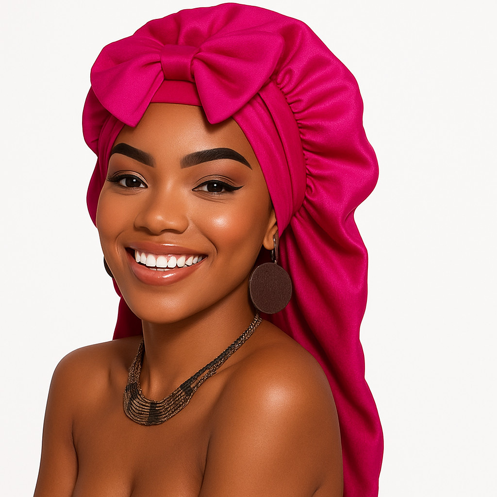 Touca de Cetim Longa com Faixa de Laço Toca Cetim Dupla Face Gigante para Cabelos Longos Box Braids
