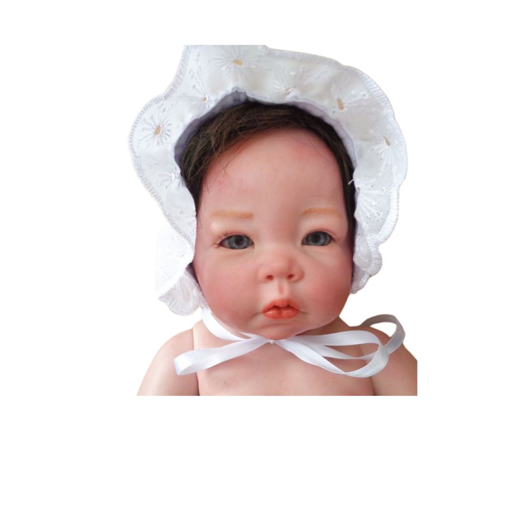 touca em bordado inglês para bebe tamanho RN de 0 a 2 meses