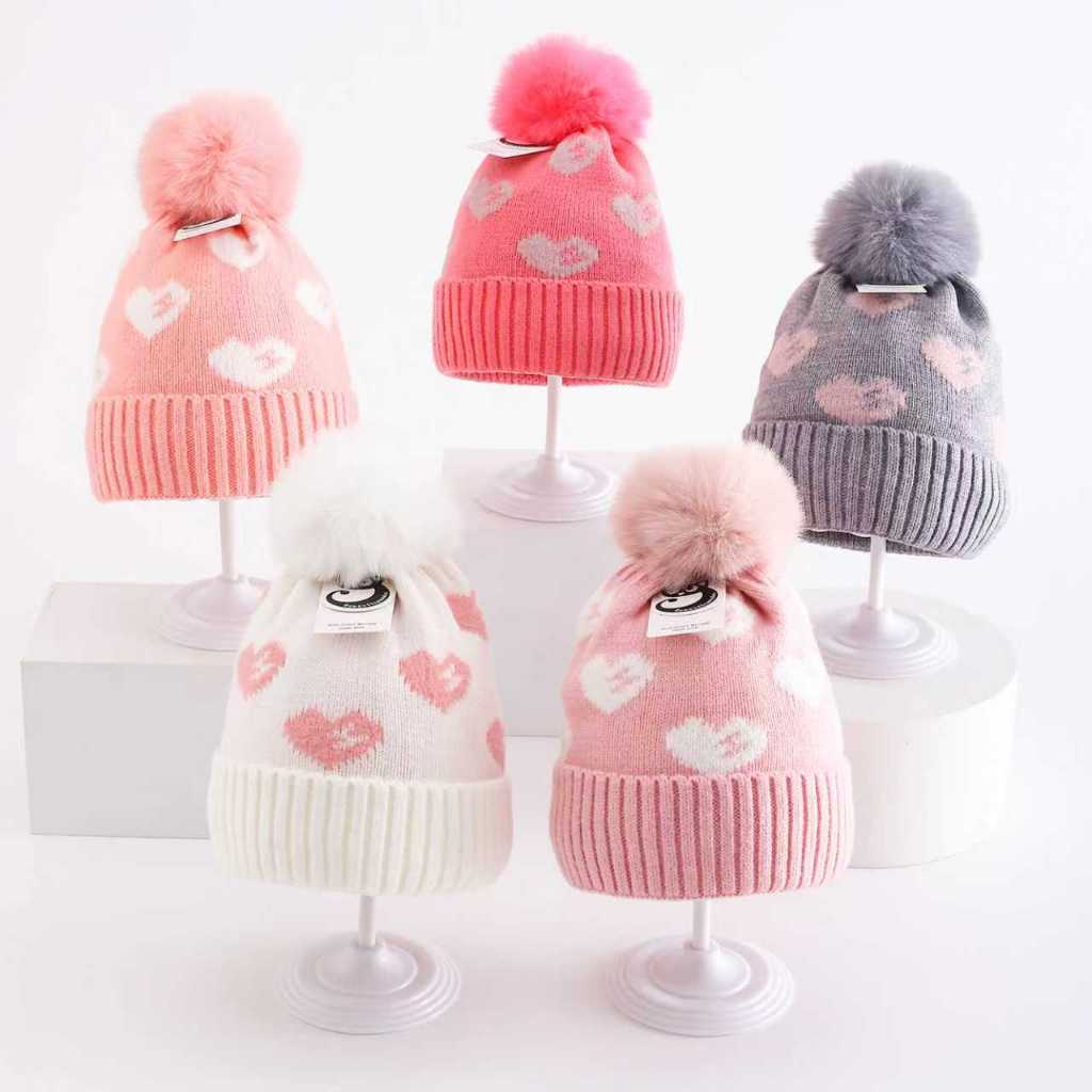 Touca Gorro Infantil Juvenil 03 á 08 Anos Para Crianças Com Pom Pom Coração E Forro Interno Para Inverno Frio
